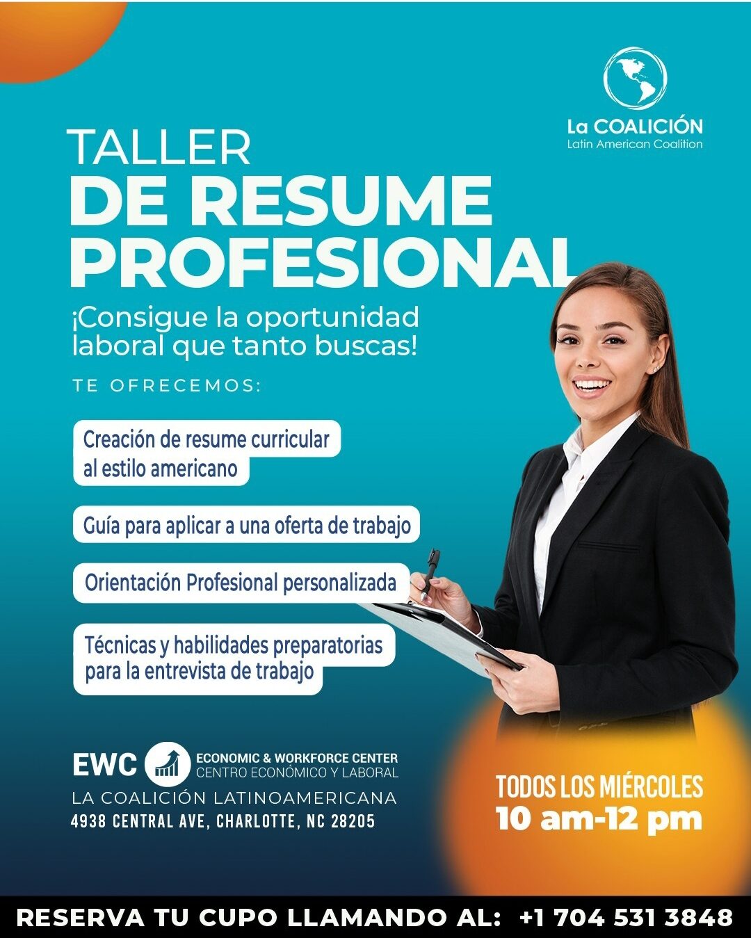 Charlotte – NC. La Coalición Latinoamericana (LAC) siempre pensando en ti, creó el Taller de Resume Profesional, para darte las técnicas necesarias a la hora de realizar tu resumen curricular … Continue reading LAC: Te esperamos en nuestro Taller de Resume Profesional