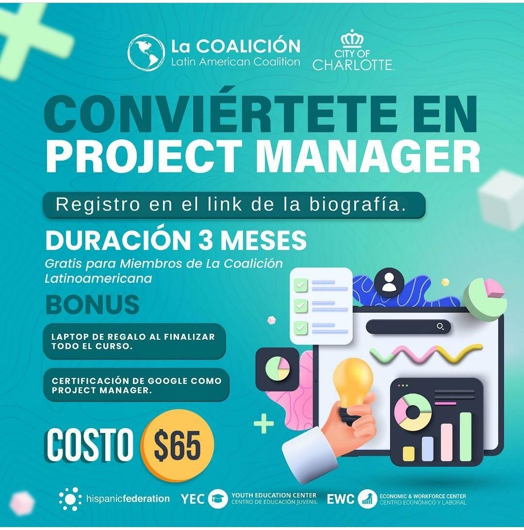 Charlotte – NC. La Coalición Latinoamericana le invita a participar en Project Manager un curso donde que fortalecerá sus habilidades laborales y empresariales con la modalidad semipresencial.