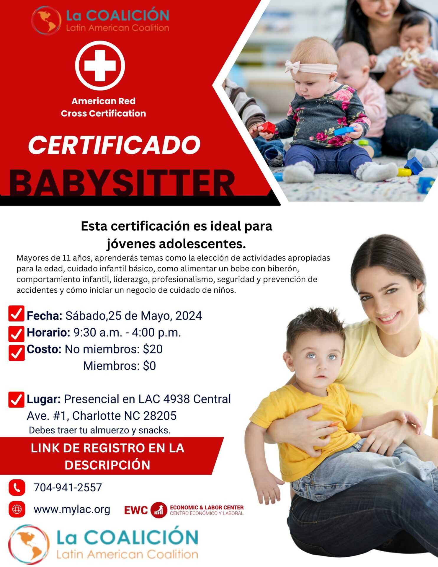 Mayores de 11 años, aprenderás temas como la elección de actividades apropiadas para la edad, cuidado infantil básico, como alimentar un bebe con biberón, comportamiento infantil, liderazgo, profesionalismo, seguridad y prevención de accidentes y cómo iniciar un negocio de cuidado de niños.