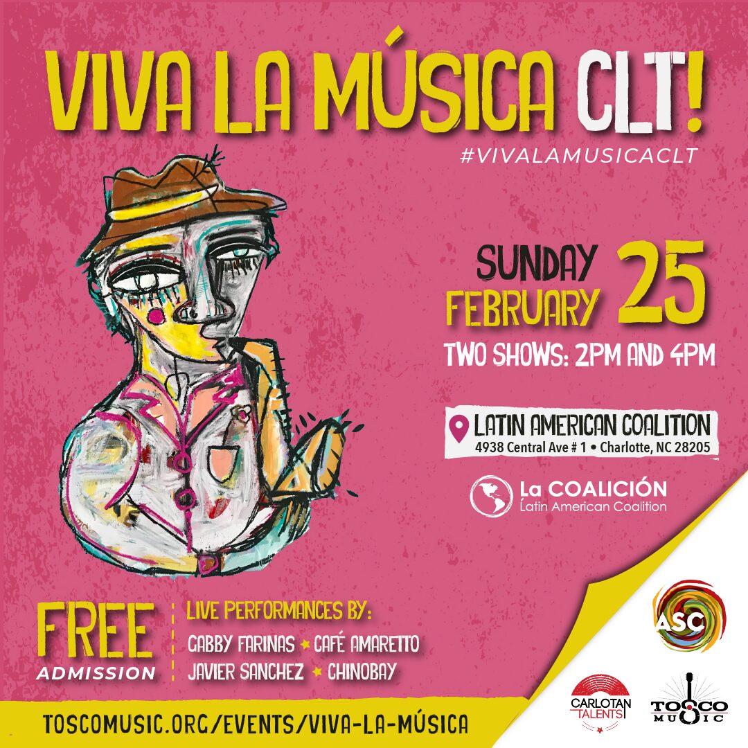 Feb 25 Viva la Musica CLT! 2:00 PM - 3:00 PM Oficinas de LAC 4938 Central Ave. Suite 101, Charlotte Event Details Get Directions