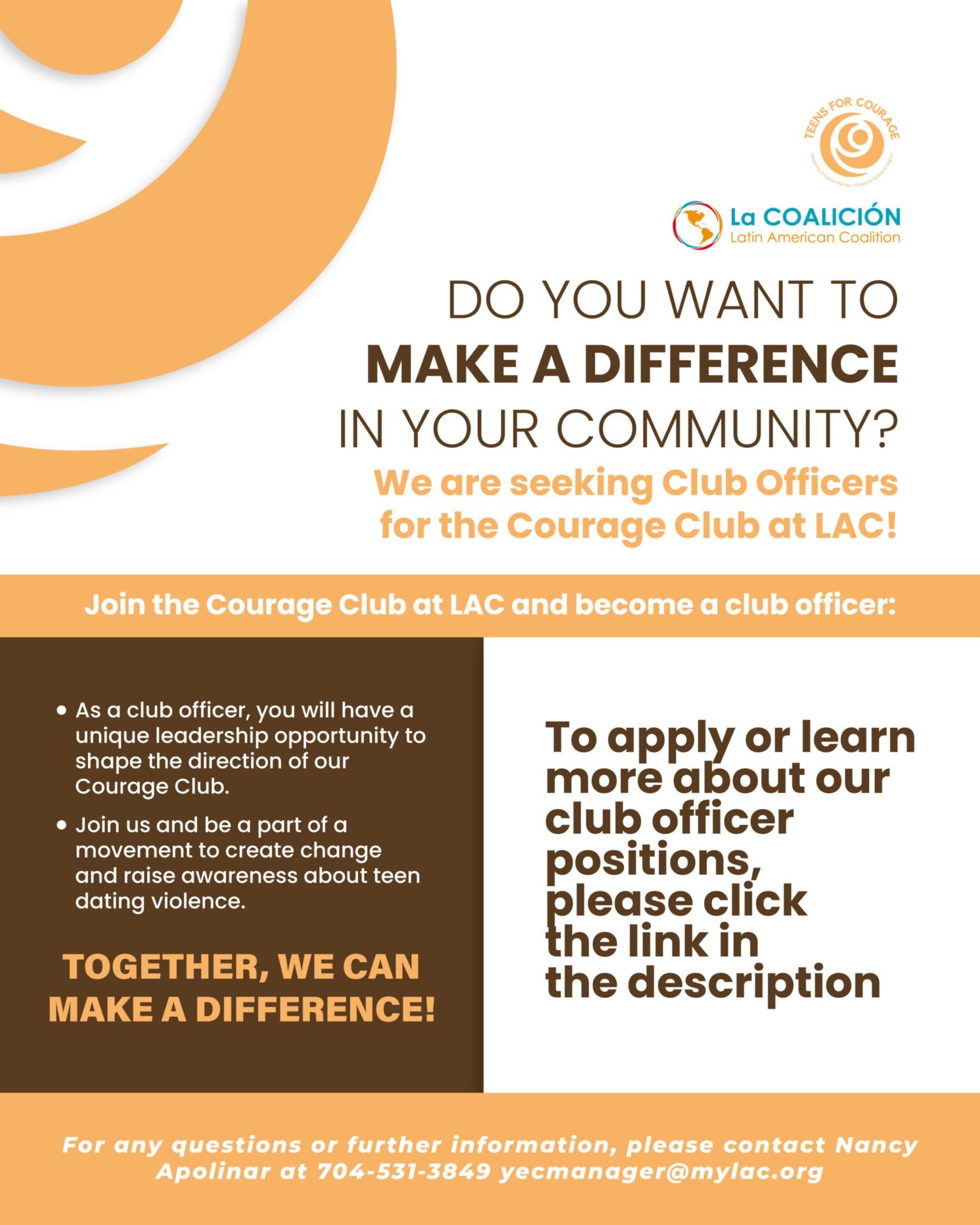 Seeking Club Officers for the Courage Club at LAC! May 26 Seeking Club Officers for the Courage Club at LAC! May 26, 2023 - August 31, 2023