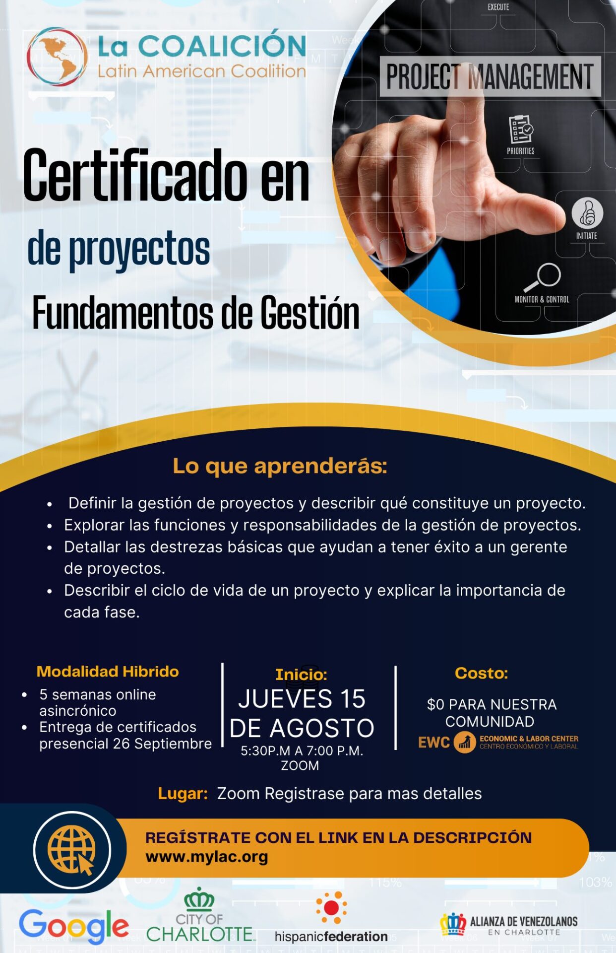 Certificado en de proyectos Fundamentos de Gestión Aug 15 Certificado en de proyectos Fundamentos de Gestión Featured 5:30 PM - 7:00 PM