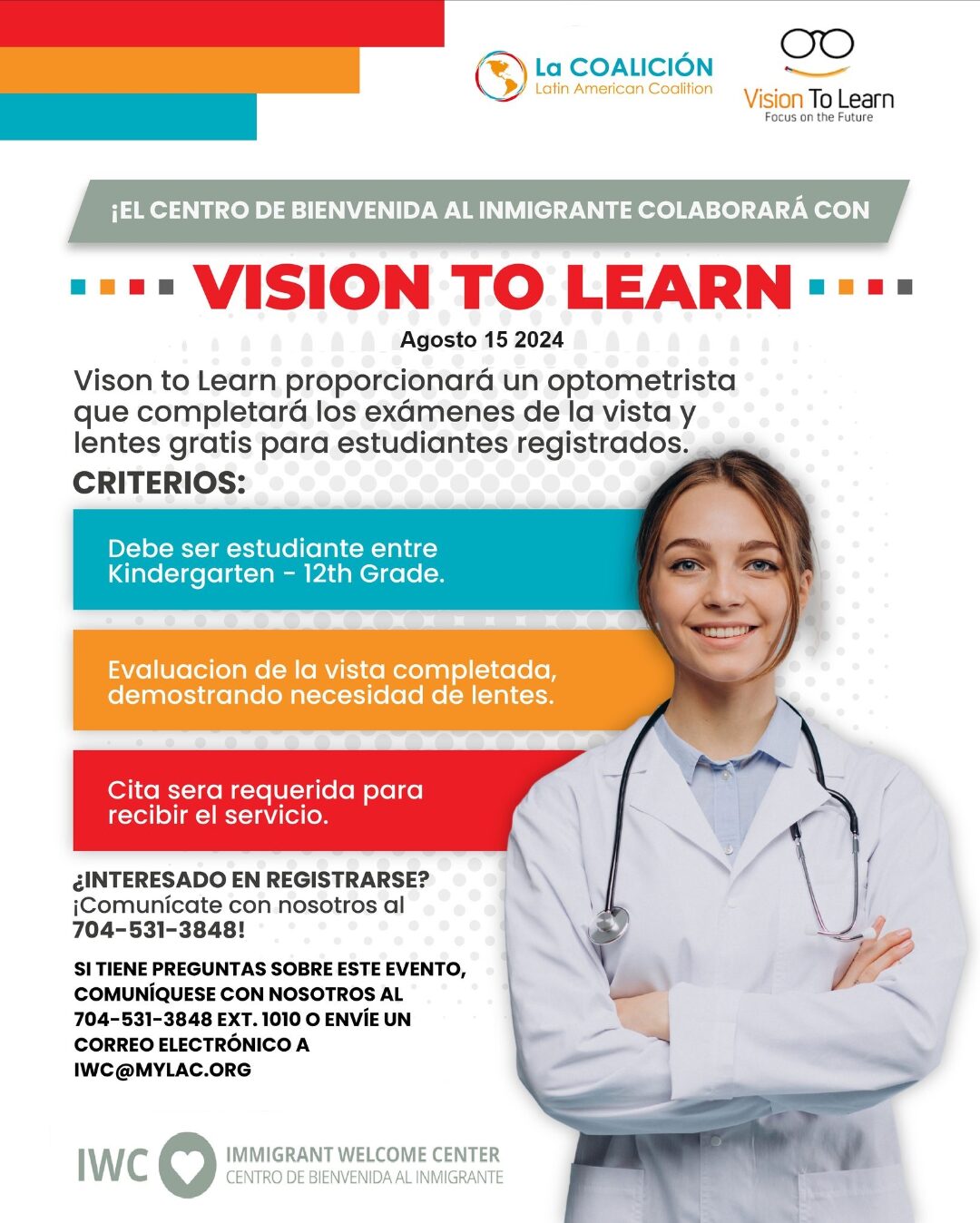 ¡Nos unimos a @visiontolearn para ofrecer exámenes de la vista y lentes gratis para estudiantes registrados! Aug 15 ¡Nos unimos a @visiontolearn para ofrecer exámenes de la vista y lentes gratis para estudiantes registrados! Featured All day