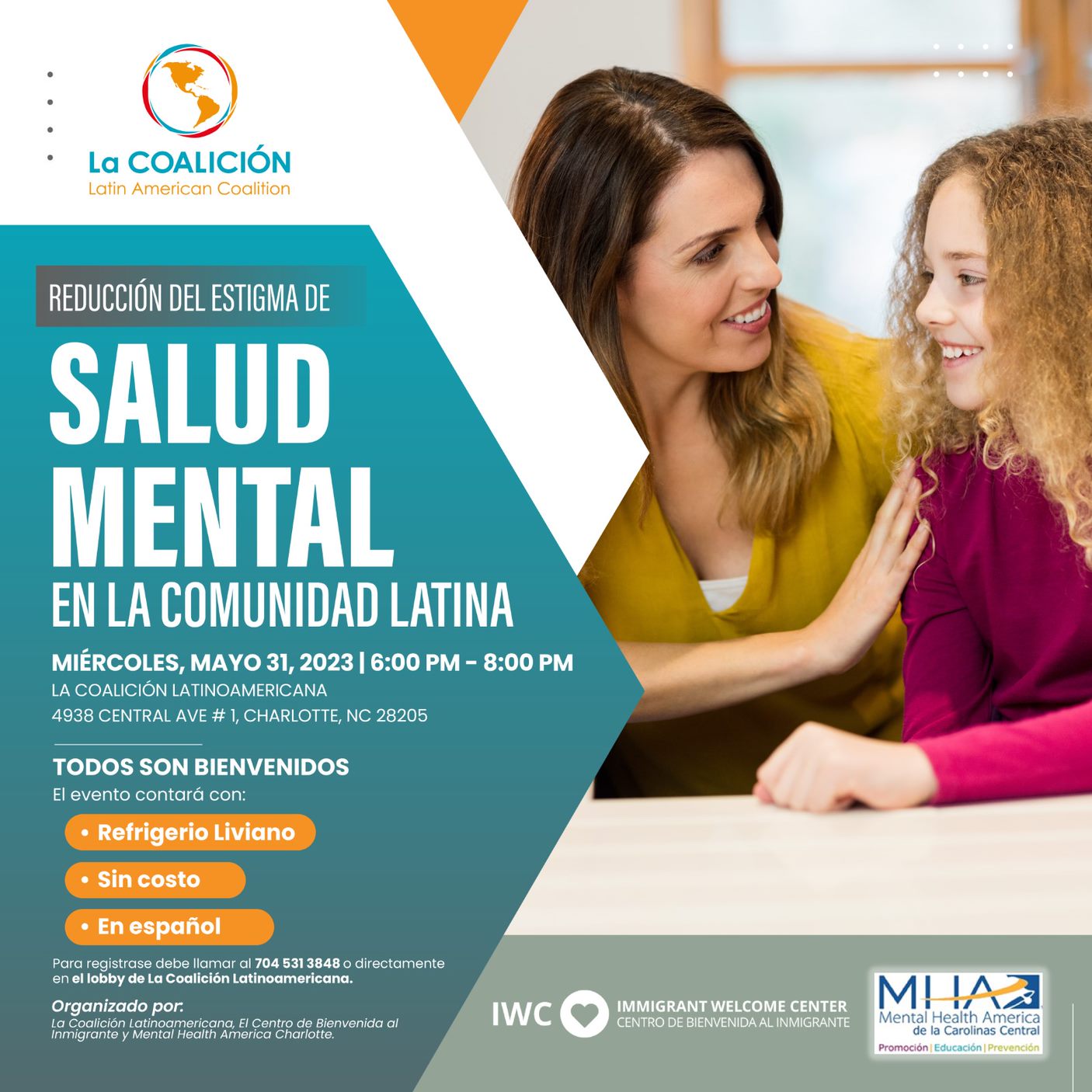 The event is organized by the Immigrant Welcome Center and Mental Health America of Central Carolinas - MHA.